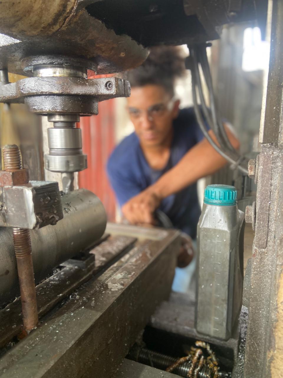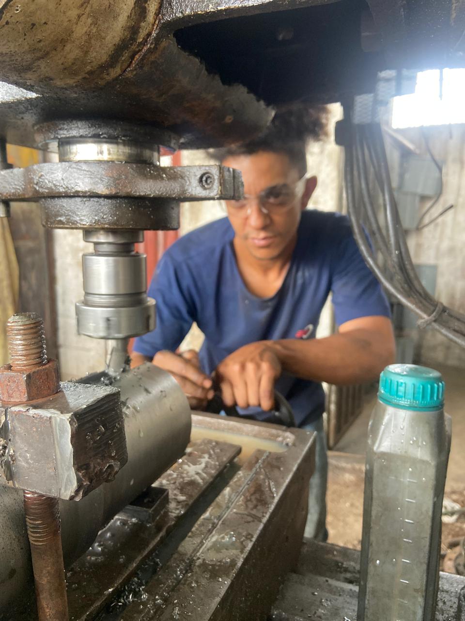 Fabricação de eixos, Polias, engrenagens, flanges, mandrilhamentos e outros elementos de máquinas, recuperação de mancais, desenvolvimento e fabricação de peças metálicas diversas.